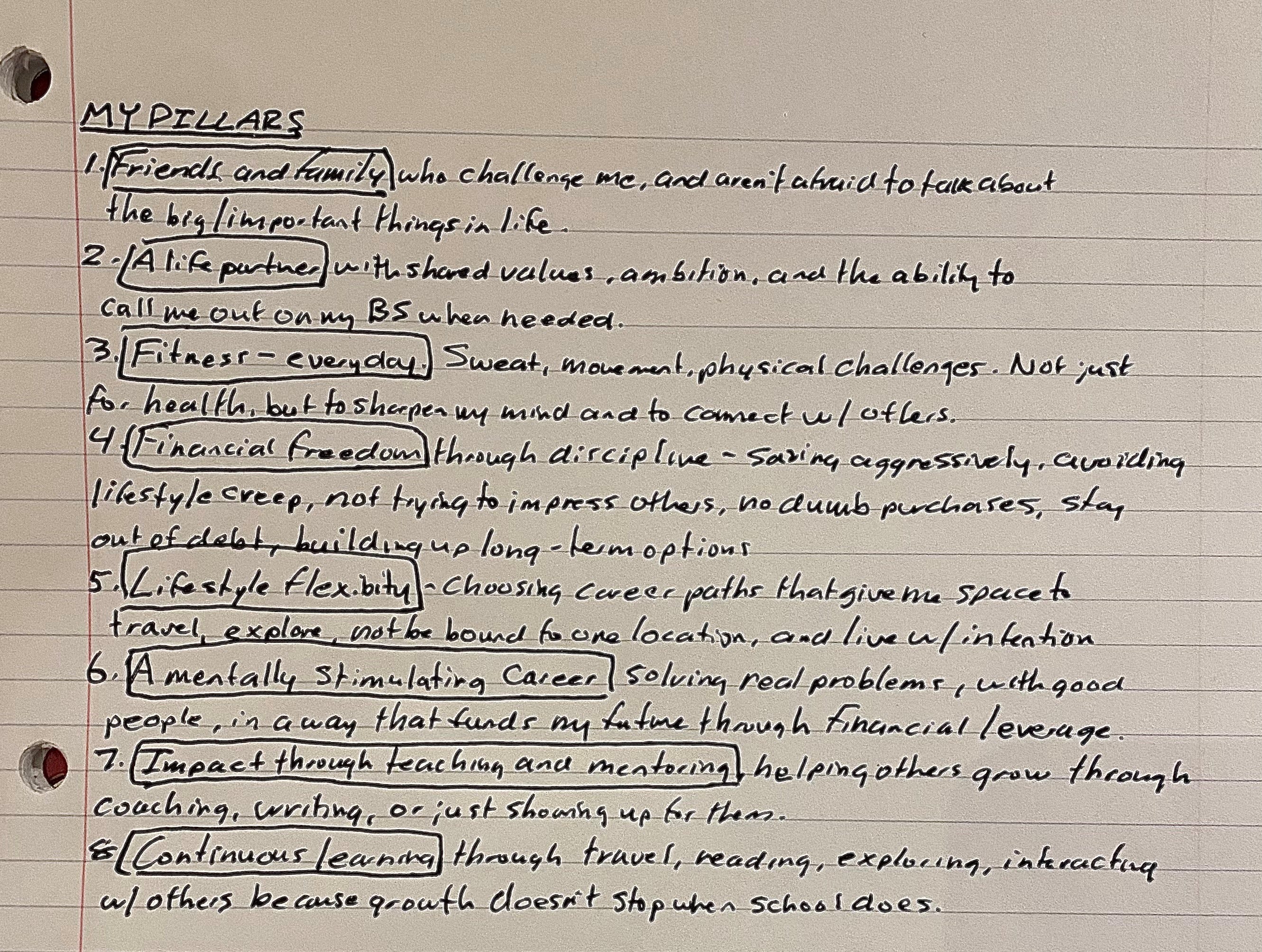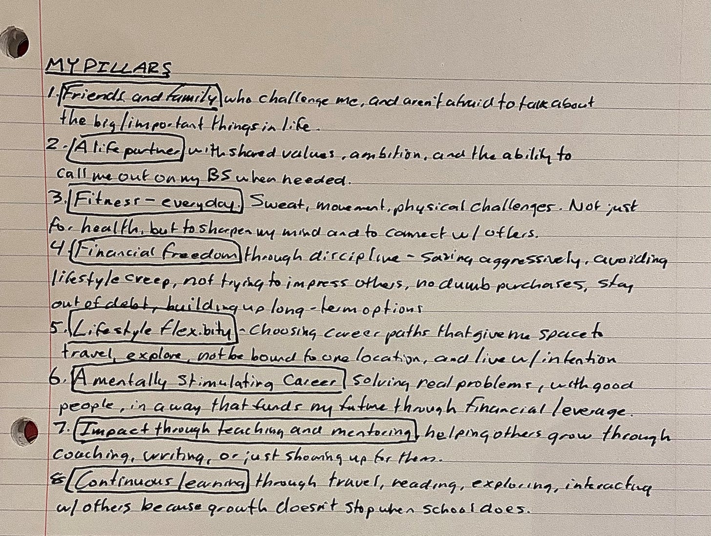One of my mentors refers to them as pillars, steady anchors that guide how I work, who I spend time with, and what I say yes or no to.