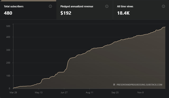 One post slowly turned into many. Over 50 long-form pieces, hundreds of notes, and more consistency than I ever expected to find. People began to read, respond, and stick around. Today my page has a little over 20,000 views and is approaching 500 subscribers. I am also building my first book, a 365-day guided journal, which is still something I would have never imagined creating when I pressed publish for the first time.